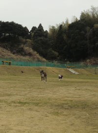 行った時は、だ〜れもいなかったので、この広大なドッグランに、小型犬のアップルが一人で走ってました。